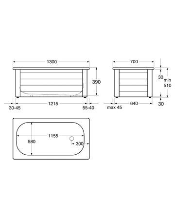 Gustavsberg 1300 badekar uden benstativ i hvid emalje