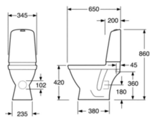 Gustavsberg 1510L Nautic åben skyllerand (Hygienic Flush) og skjult P-lås . Med 3/6 liters duoskyl, uden sæde., 34.5 x 86.0 x 65.0 cm