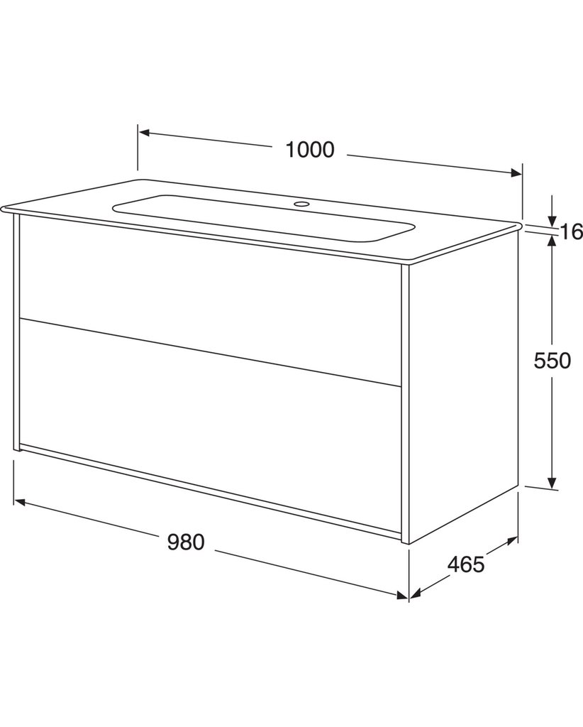 - Fuldt dækket håndvask i porcelæn i et slankt design og store opbevaringsområder