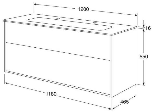 - Fuldt dækket håndvask i porcelæn i et slankt design og store opbevaringsområder