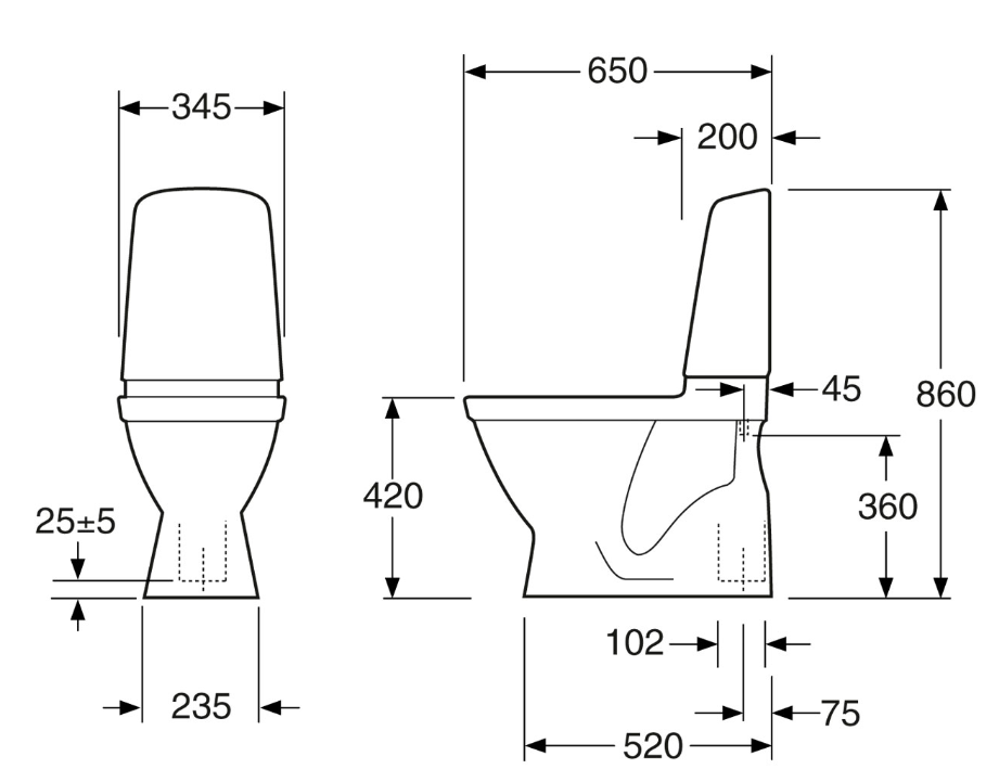 Gustavsberg Nautic 1500 gulvstående toilet uden skyllerand