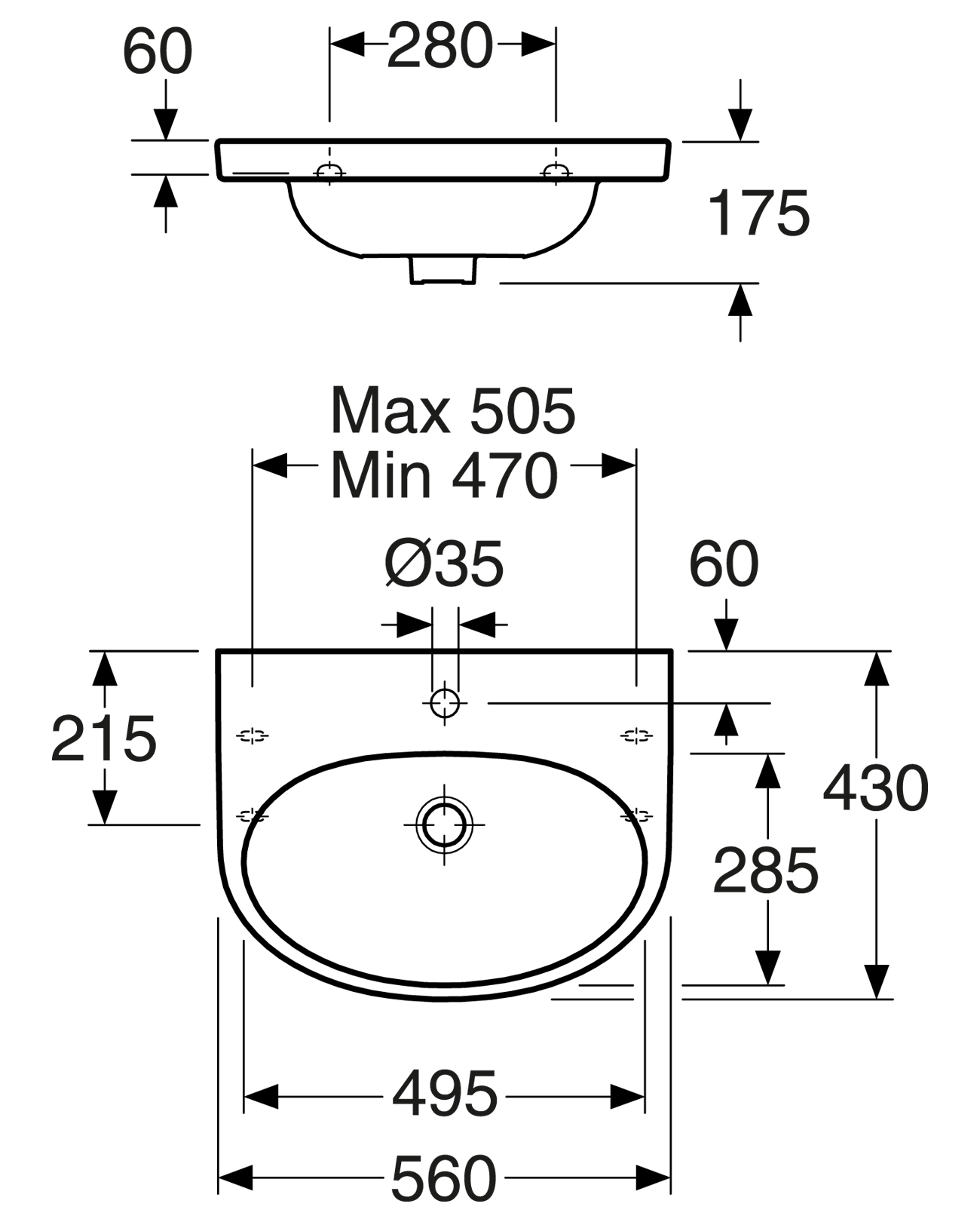 Gustavsberg Nautic håndvask 560x430 med C+ hvid monteres på bolte eller bæringer