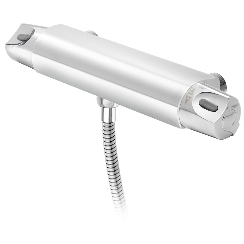 Termostatarmatur med 1/2" bruserafgang ned og eksklusiv rosetter og tilgangsstykker