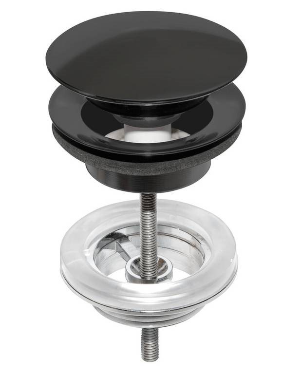 Push-down bundventil til håndvaske med overløb. Mål på håndvask: min 30 mm, max 45 mm.