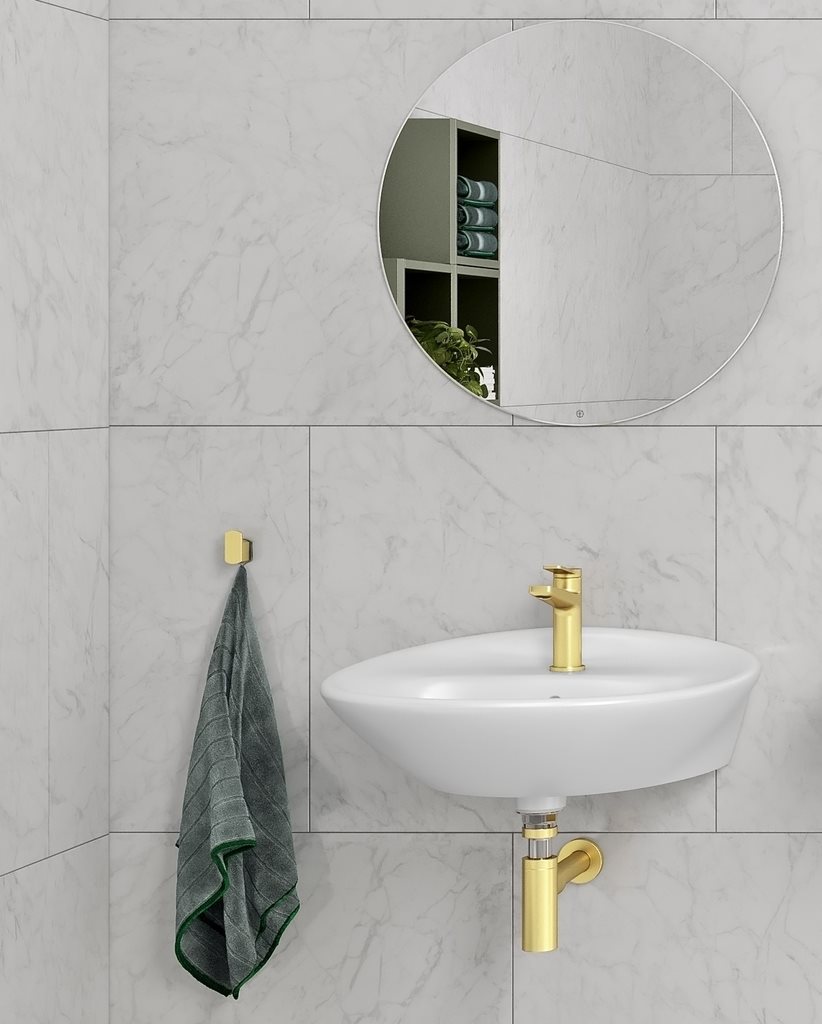 Gustavsberg rundt spejl Ø60 cm inkl. ophæng. Spejlet er nemt at montere på væggen, da der er justeringsmuligheder.
