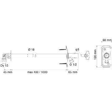 Udendørsarmatur med typegodkendt kontraventil til rumtype 1. Selvtømmende frostsikker uanset om slangen er tilsluttet. Maks. vægtykkelse 1000 mm.