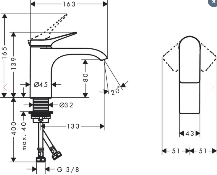 ComfortZonen på 80mm giver både udvidet betjeningskomfort og god plads mellem tud og vask.