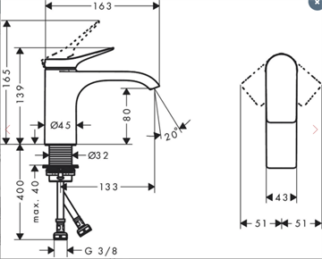 består af: 1-grebs håndvaskarmatur udenbundventil