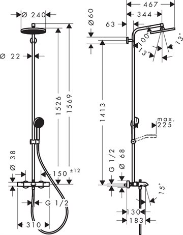 hansgrohe Activera S Showerpipe 240 1jet med kartermostat, krom