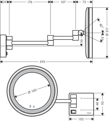 Klassisk barber- og makeup spejl med LED belysning i moderne design. Det vægmonterede spejl er svingbar, og har 3 gange forstørrelse. Det blændfri LED-lys på spejlet kombineret med 3 dobbelt forstørrelse skaber ideelle betingelser for personlig pleje på en afslappet måde. Drejefunktionen giver hurtig justering og lader dig opbevare spejlet på væggen for at spare plads, når den ikke er i brug.
