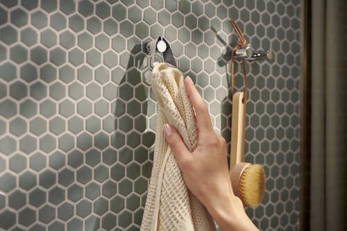 Den flotte hansgrohe AddStoris håndklædekrog giver baderummet et visuelt og funktionelt præg, og med den kompakte krog har du altid et håndklæde eller en badekåbe inden for rækkevidde.