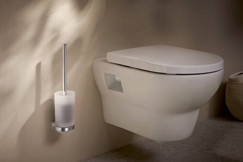 Kvalitets toiletbørste med firkantet vægmonteret holder i enkel og flot udformning.