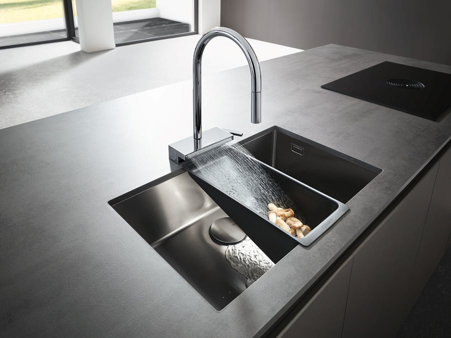 Her præsenterer Hansgrohe nyt og epokegørende køkkenbatteri, som gør arbejdet omkring køkkenvasken endnu lettere. i form af Aquno Select M81. Dette nye køkkenarmatur eller "redskab"  er en kombination af usædvanligt produktdesign, innovativ stråleteknologi og skræddersyet tilbehør – for fritidskokke og køkkenentusiaster, der lægger mere i madlavningen end blot tilberedning af et måltid.