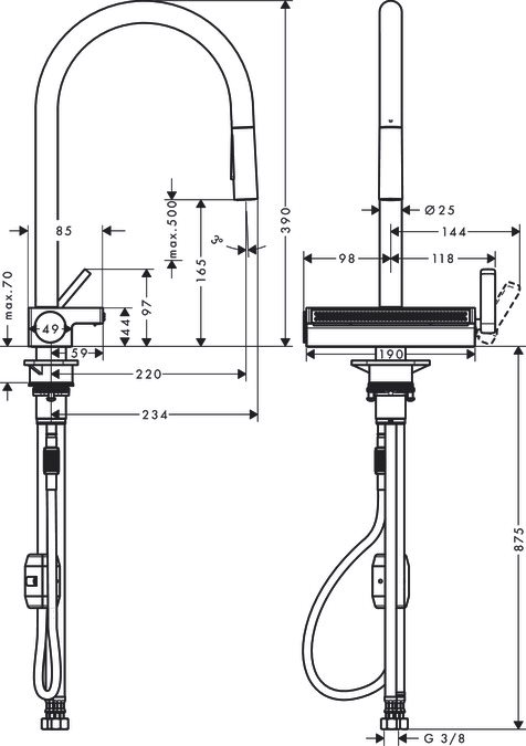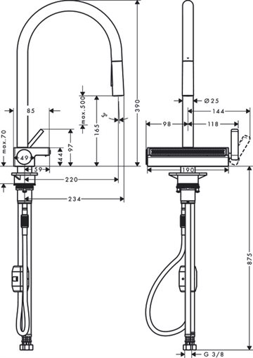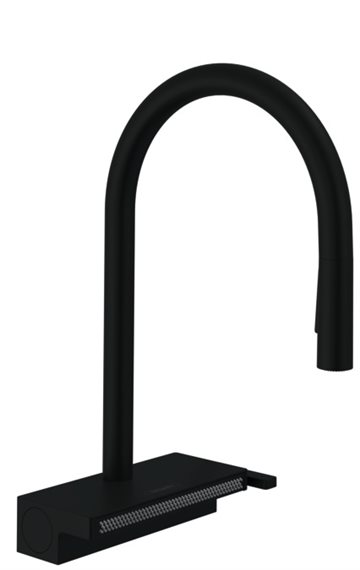 Hansgrohe Aquno Select M81 blandingsbatteri til køkken med stor C-tud og udtræksbruser - fås i farverne: Krom, mat sort og Rustfrit stål look