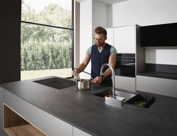 Køkkenvandhanen gør din hverdag lettere på grund af det gennemtænkte design, den smarte betjening og de rengøringsvenlige flader.