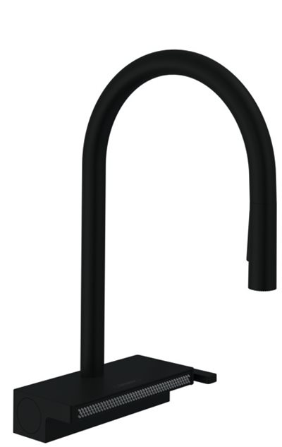 Hansgrohe Aquno Select M81 blandingsbatteri til køkken med stor C-tud og udtræksbruser i mat sort