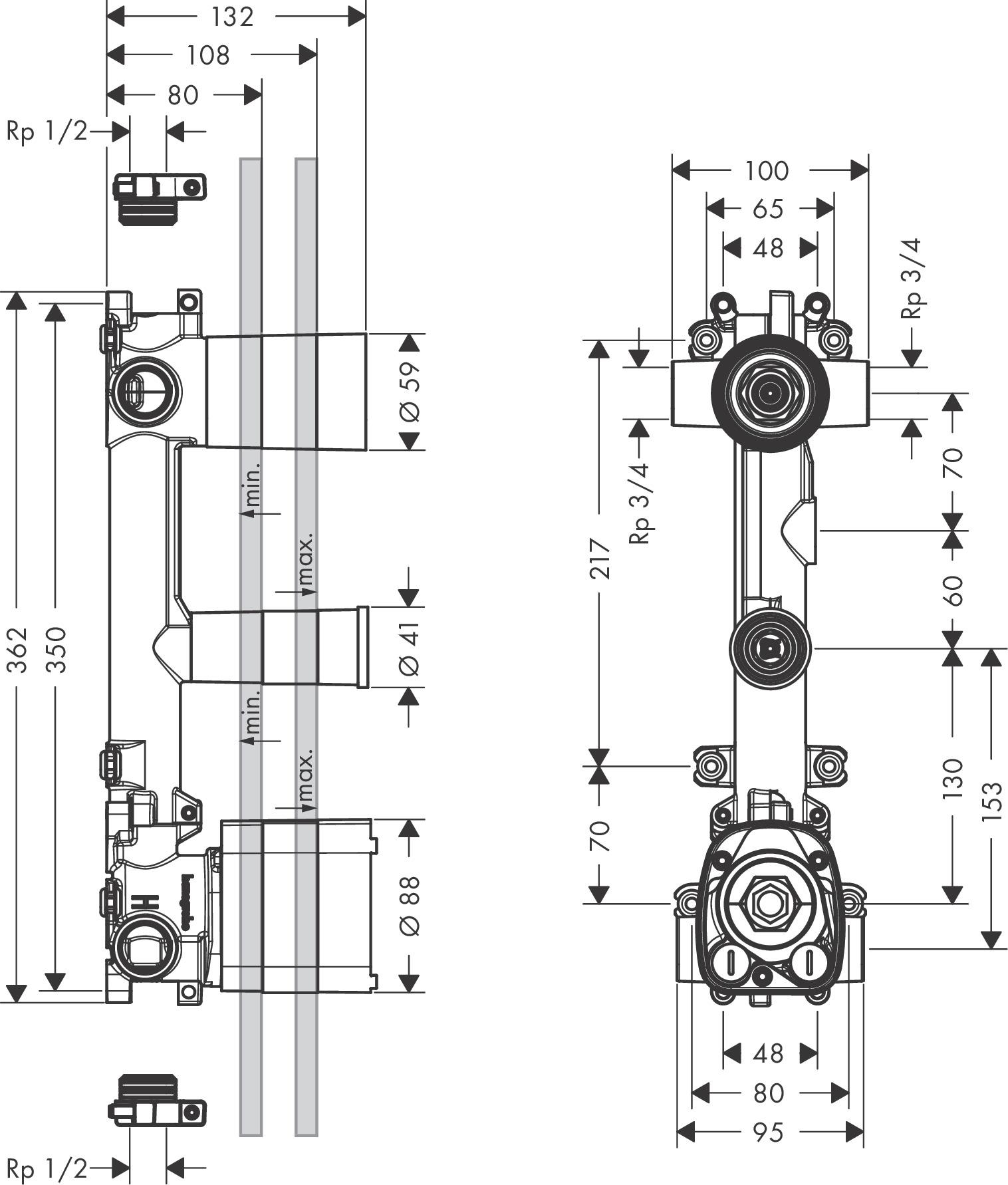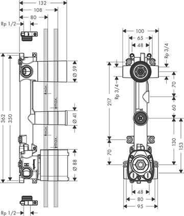 hansgrohe AXOR Citterio E indbygningsdel til to udtag til 722532104 38x12