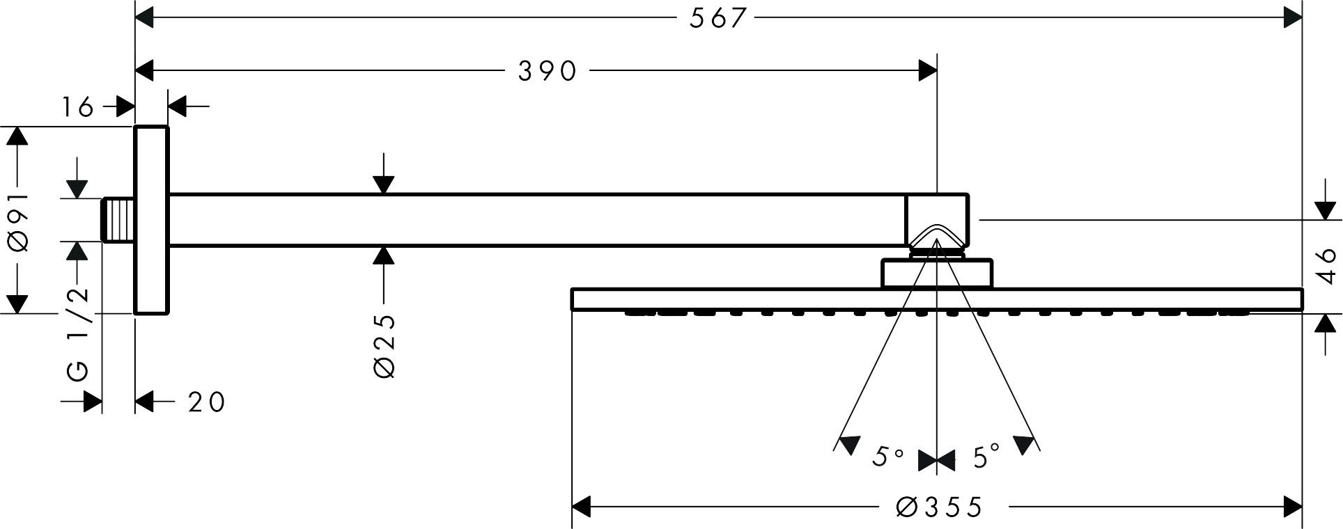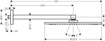 hansgrohe AXOR hovedbruser 1jet med vægmontage Ø350mm. Krom