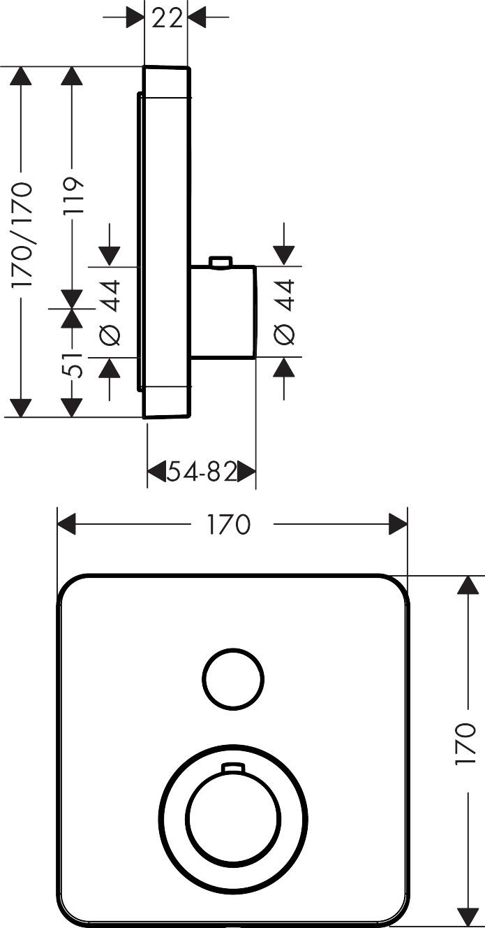 hansgrohe AXOR ShowerSelect termostatarmatur 170x170mm SoftCube med afspærring