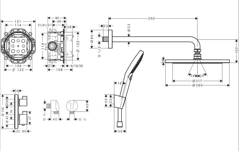 Hansgrohe Croma Brusesystem 280 1jet med Ecostat S til indbygning i mat sort