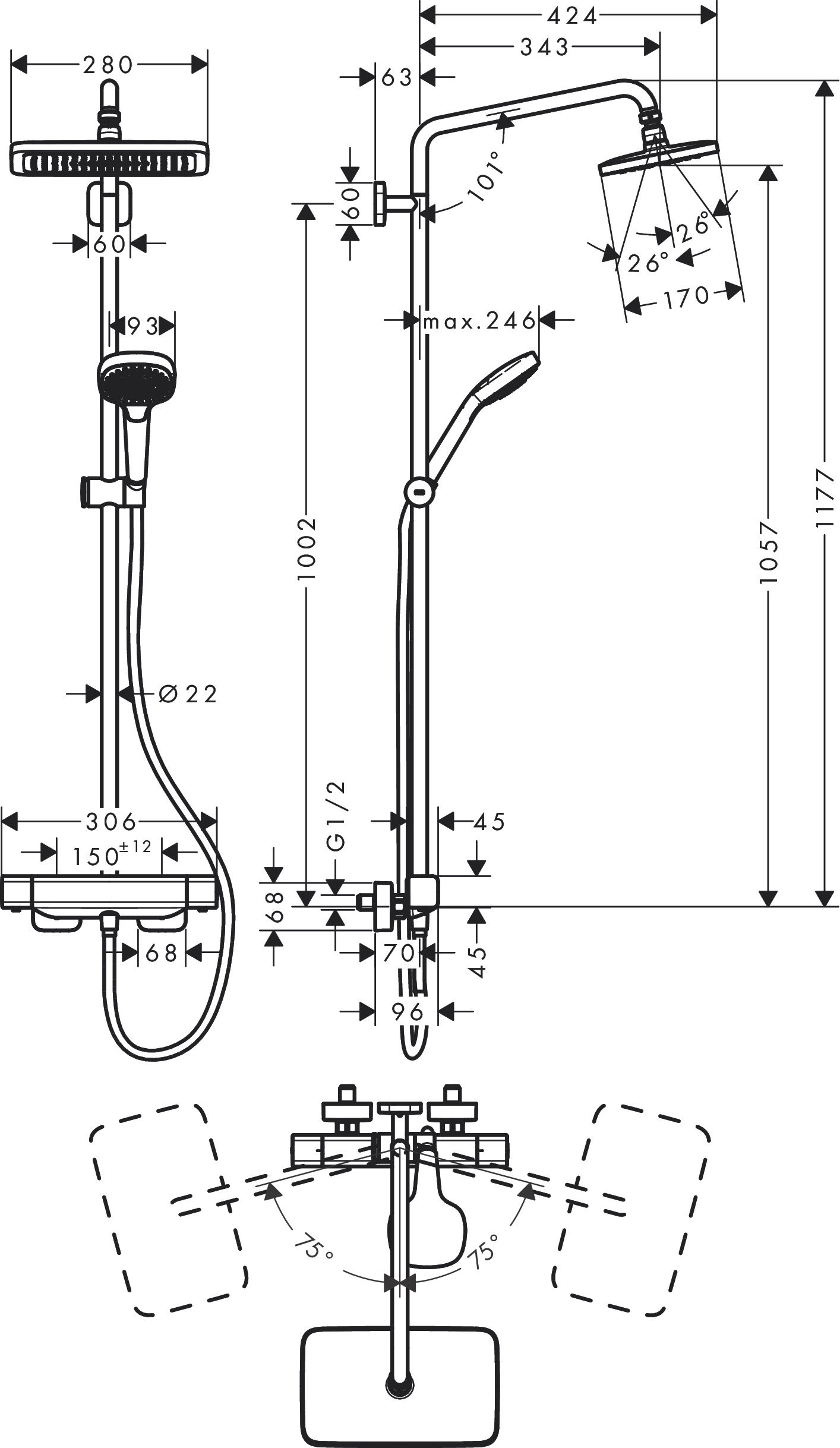 hansgrohe Croma E Showerpipe 280 1jet EcoSmart med termostat - krom