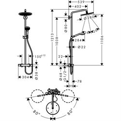 Her får du et komplet Hansgrohe brusesystem i flot design og god kvalitet. Brusearmaturet er med termostat og skoldningssikring, der giver tryghed og komfort. Blandingsbatteriets brusersæt består af stort brusehoved 280 mm og håndbruser med EcoSmart hvilket reducere vandforbruget væsentligt. Her er du garanteret en perfekt bruseoplevelse ved hvert brusebad.