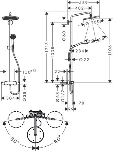 Hansgrohe Croma Select AIR 280 Showerpipe i Børstet sort krom PVD