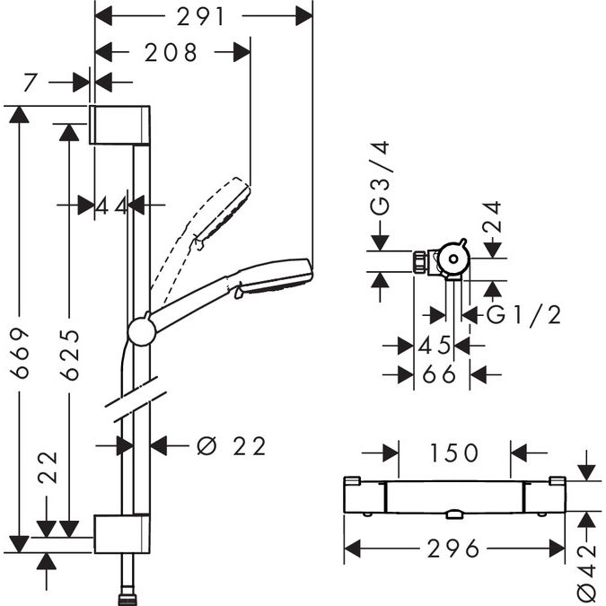 Her får du et komplet Hansgrohe brusesystem i flot design og god i kvalitet. Brusearmaturet er med termostat og skoldningssikring, der giver tryghed og komfort. Blandingsbatteriets brusersæt består af en håndbruser med et stort bruserhoved med AirPower, det vil sige at vandet blandes med luft, hvilket giver en mere fyldig vanddråbe. Og en gliderstang så håndbruseren kan højdejusteres. Her er du garanteret en perfekt bruseoplevelse ved hvert brusebad.