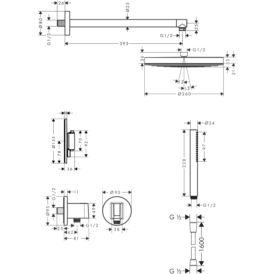 hansgrohe er kendt for sin uovertrufne kvalitet, og dette system er ingen undtagelse. Den robuste matsorte overflade er modstandsdygtig over for ridser og pletter, hvilket gør det nemt at vedligeholde systemets flotte udseende i mange år. Derudover sikrer den avancerede teknologi en vandbesparende, men stadig kraftfuld bruseoplevelse, der er skånsom både for dig og miljøet.