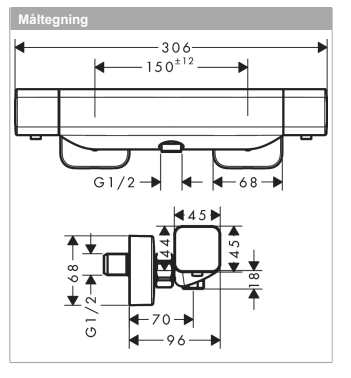 • stikmål: 150 mm ± 12 mm