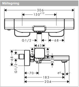 Hansgrohe Ecostat E kar-/brusetermostat med forskruninger og rosetter