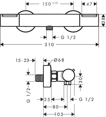 hansgrohe Ecostat Element Brusetermostat i krom, leveres med cylindriske rosetter og forskruninger.