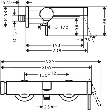 Hansgrohe Finoris kar-/brusearmatur uden termostat og til montering på væggen i mat hvid