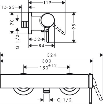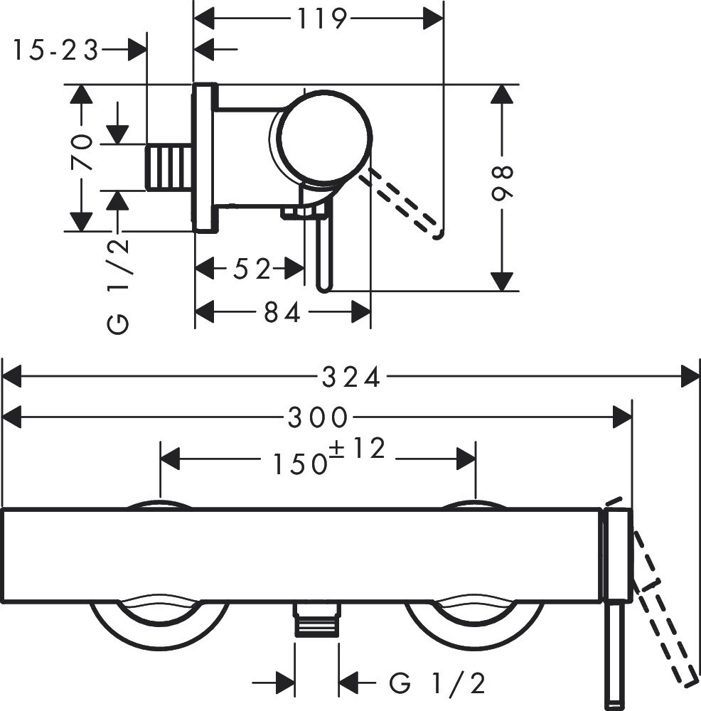 Hansgrohe Finoris brusearmatur uden termostat til montering på væggen i krom