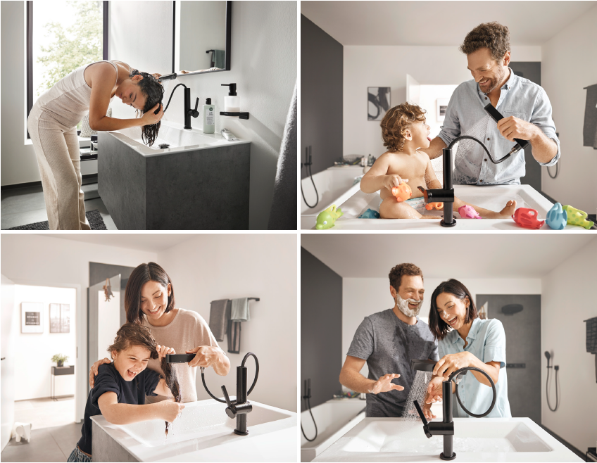 I en familiens husstand er der mange forskellige behov ved håndvasken om morgenen, og med Finoris er du godt på vej til at få dem alle dækket. Vandhanen har nem betjening, og giver mulighed for spontan vask af håret, badning af babyen og hurtig skylning af blusen.
