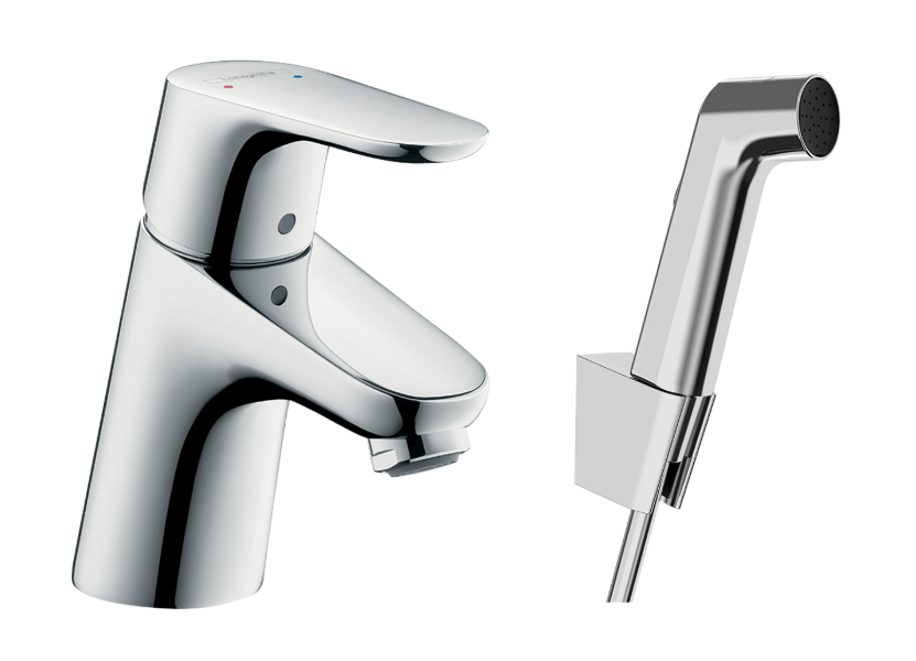 Hansgrohe Focus 1-grebs håndvaskarmatur 70 med bidette håndbruser og 160 cm bruserslange