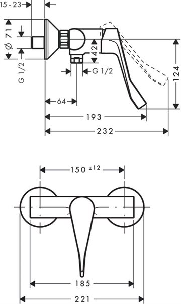 Hansgrohe Focus brusearmatur, Care med ekstra langt greb