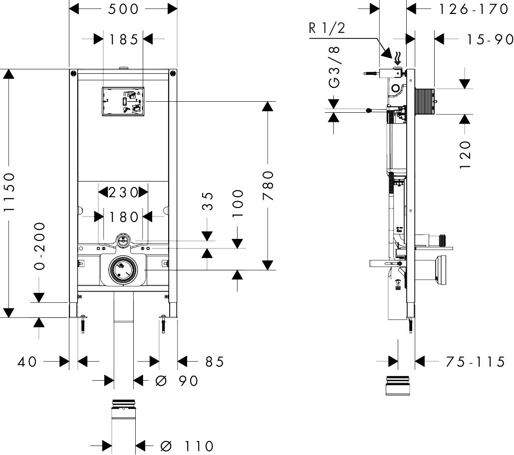 hansgrohe iFrame universal Indbygningscisterne 1120 til væghængt toilet inkl. vægbeslag