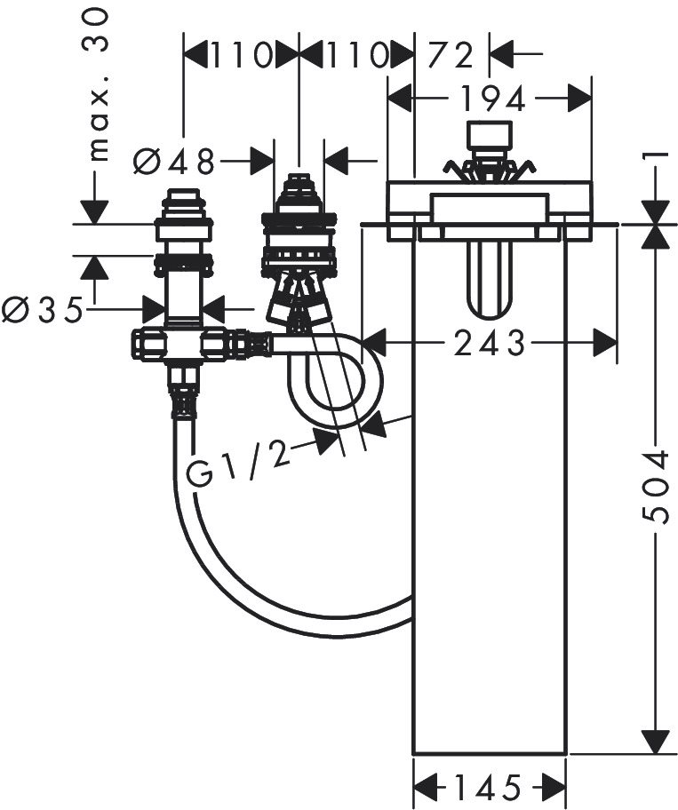 hansgrohe Indbygningsdel til 3-huls 1-grebs kararmatur til karkant