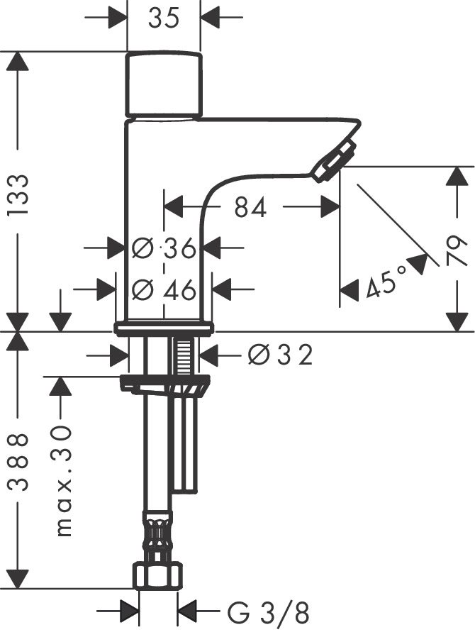hansgrohe Logis 80 servantehane til koldt vand uden bundventil i krom