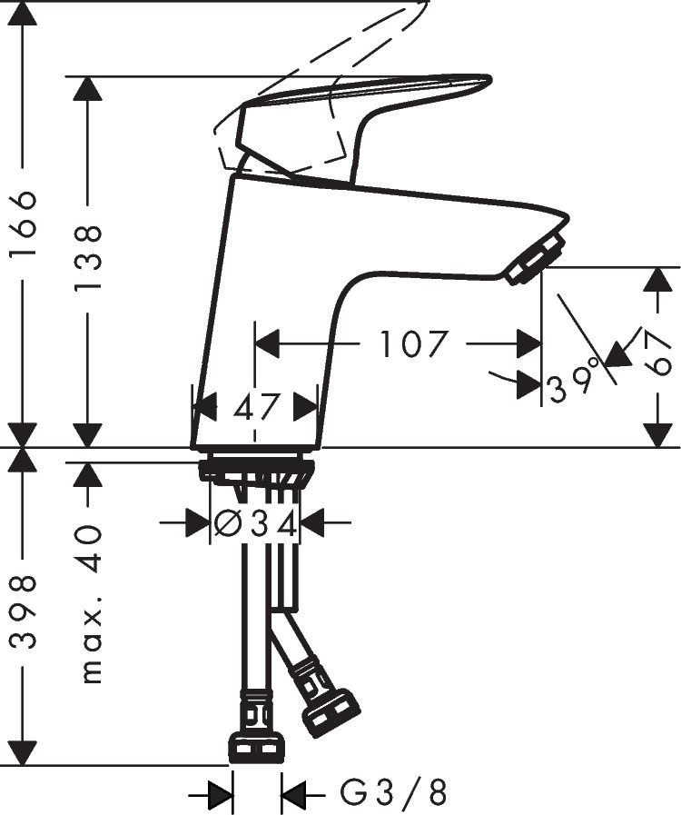 Hansgrohe Logis håndvaskarmatur, uden bundventil, Krom