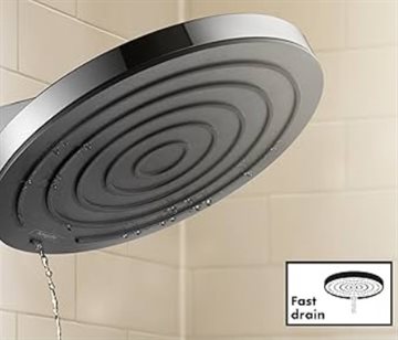 Hansgrohe Fast Drain er en innovativ løsning, der sikrer hurtig og effektiv tømning af din hovedbruser efter endt bad. Med Fast Drain slipper du for ophobning af vand på badeværelsesgulvet, da systemet er designet til at håndtere store mængder vand på kort tid. Med Fast Drain tømmes hovedbruseren for vand, hvorved til kalkning minimeres væsentligt. Selvtømning sker automatisk når hovedbruseren stilles i en vinkel på 10°.
