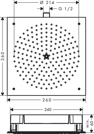 Hansgrohe Raindance 260 x 260 Air 1jet loft indbygget hovedbruser