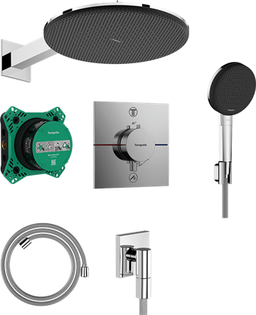 hansgrohe Raindance Alive S Brusersystem til indbygning 300 1jet med termostat med iBox universal, Ø300 mm hovedbruser, bruserbøjning, håndbruser 125, bruserholder og tekstilbruserslange 160 cm