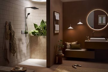 Omdan dit badeværelse til en oase af selvforkælelse og velvære. Reguler din brusefornøjelse med et tryk på knappen. Omskiftningen mellem hoved- og håndbruseren sker på Ikonerne på brusearmaturet. Her er du garanteret en perfekt bruseoplevelse ved hvert brusebad. For at optimere oplevelsen er alle vandførende dele er lydisolerede (lydklasse 1)