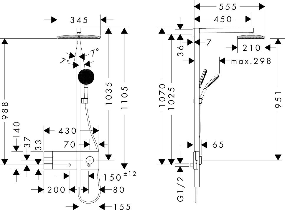 hansgrohe Raindance Alive Q Showerpipe 210/340 2jet EcoSmart, Børstet sort krom PVD