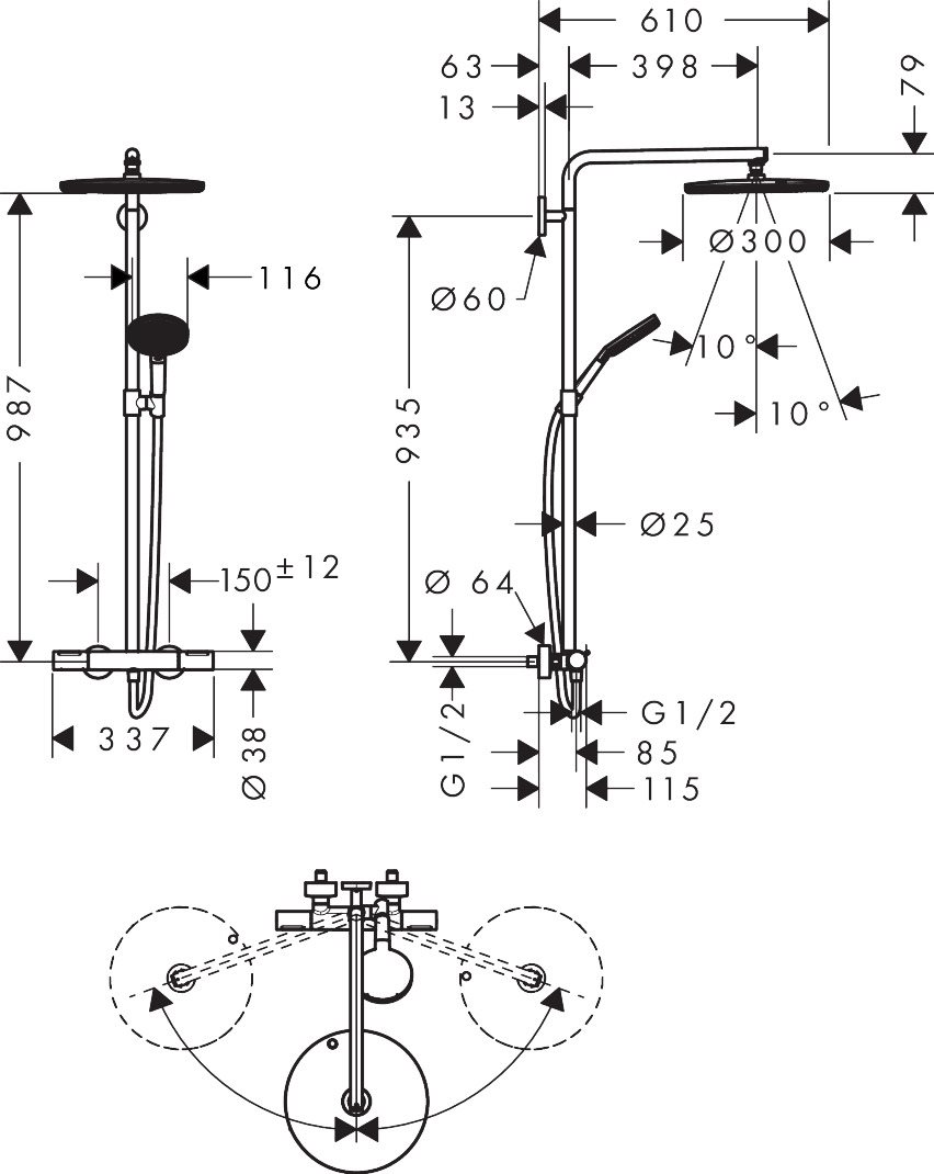 hansgrohe Raindance Alive S Puro Showerpipe 300 1jet med termostat i krom