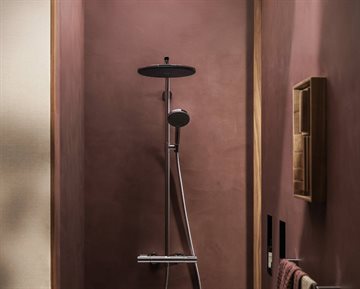 Brusearmaturet er med termostat og skoldningssikring, der giver tryghed og komfort. Blandingsbatteriets brusersæt består af stort brusehoved Ø300 mm med forudindstillet RainAir, men med Spray switch knappen kan man skifte til PowderRain, enten i forbindelse med montering eller skift nemt på et senere tidspunkt. PowderRain er en mikrodråbeteknologi, hvor der er seks åbninger pr. brusedyse i stedet for blot en. Resultatet er dråber som er lettere og som føles silkebløde på huden samtidig med at de indkapsler hele kroppen med vand millimeter for millimeter. Her er du garanteret en perfekt bruseoplevelse ved hvert brusebad. Håndbruseren har udover PowderRain også stråletyperne RainAir og Massagestråle.