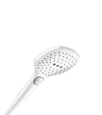 Raindance Select E serien fra tyske hansgrohe er kendetegnet ved dens kvalitet, elegance og kvadratiske design. Hovedbruseren er til montering i loftet og har gummi dupper på dyserne så kalkaflejringer let og enkelt kan fjernes.