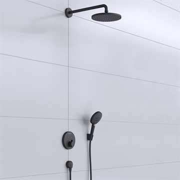 Hansgrohe Ecostat S PowderRain komplet brusesystem til indbygning med lækkert stort brusehoved på Ø240mm i mat sort. Den flotte mat sorte farve kan bidrage til at skabe tiltalende kontraster og giver rummet et stilfuldt udseende.